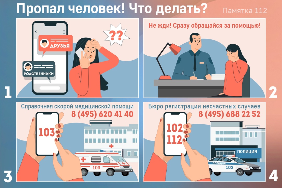 Сообщения о пропавших людях в Службе 112 Москвы, к сожалению, не редкость. Причём теряются не только пожилые люди или дети, пропасть может человек любого возраста.