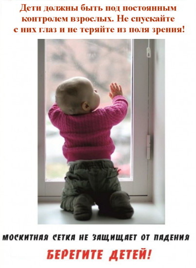 У многих на окнах москитные сетки, но надо помнить, что они не спасают от падения, их крепления очень слабые и не удержат вес ребёнка.