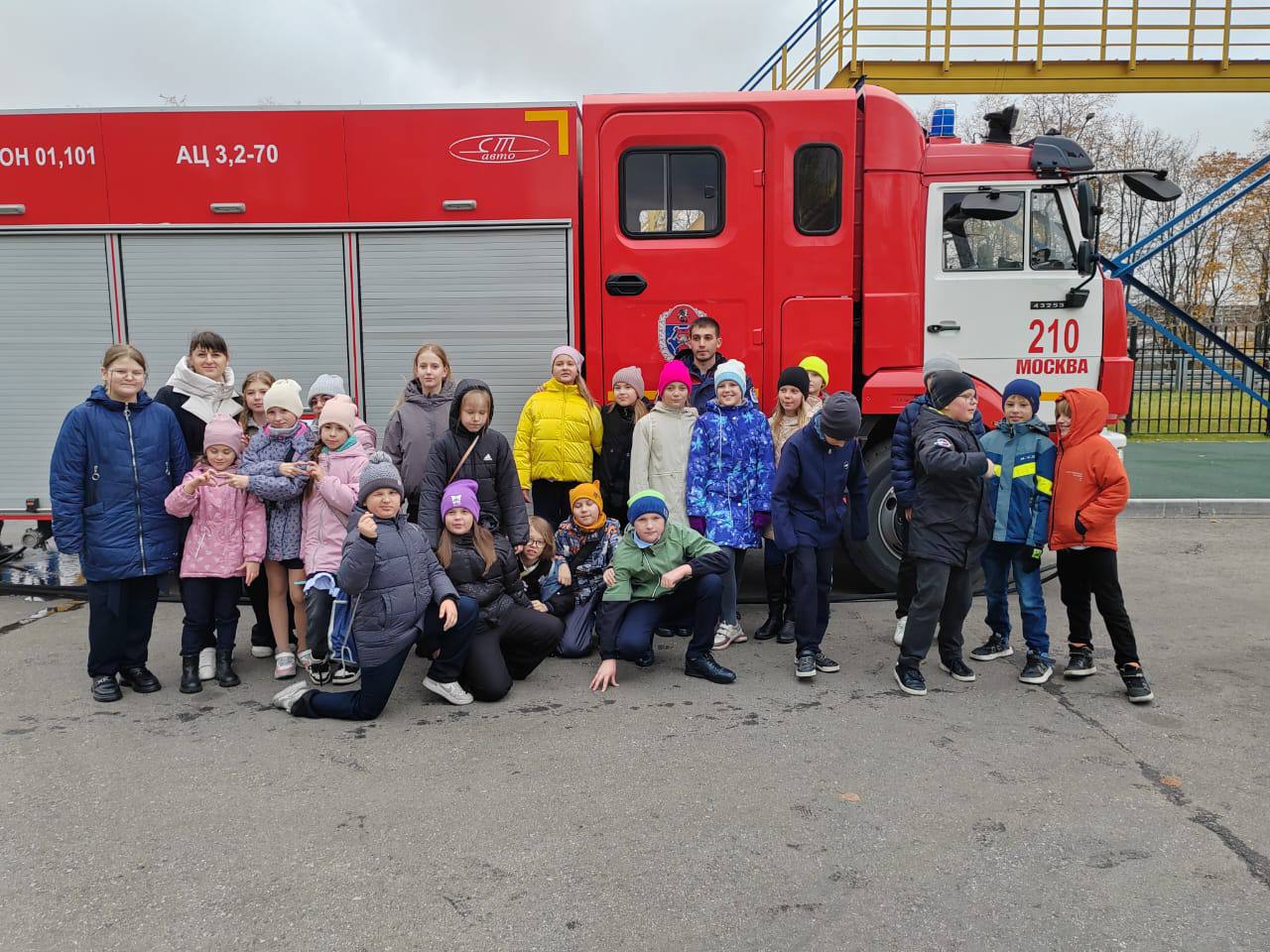Сегодня в гости к огнеборцам Пожарно-спасательного отряда № 210 Пожарно-спасательного центра Москвы пришли ученики школы № 2044 с педагогом Юлией Кизил.