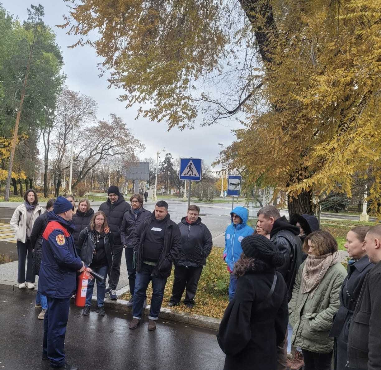 Работники пожарно-спасательного отряда № 216 Пожарно-спасательного центра Москвы, отвечающие за пожарную безопасность на территории Выставочного комплекса, регулярно проводят в павильонах занятия по пожарной безопасности и эвакуации работников и их посетителей из объекта, условно подвергшегося возгоранию.